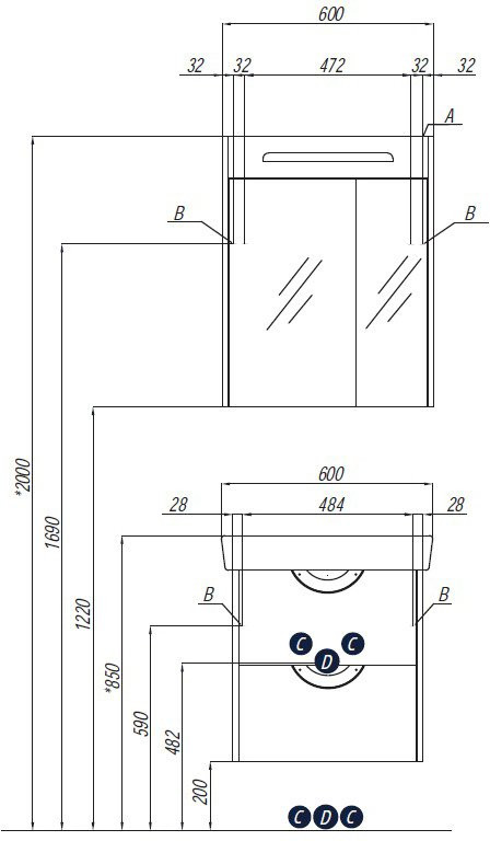 1A2118K1SIW70 Набор: 1A211801SIW70 Тумба-умывальник Сильва 60 Дуб Полярный/ 1WH302186 Раковина Нео 60