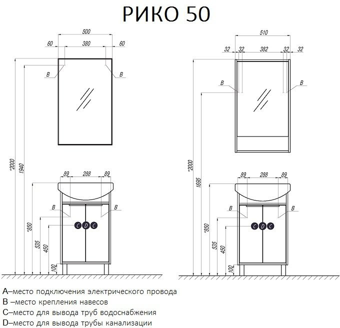 1A2124K1RIB90 Набор: 1A212401RIB90 Тумба-умывальник Рико 50/ 1WH207781 Раковина Смайл 50