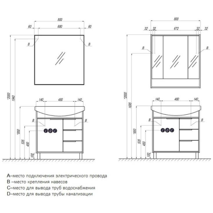 1A2154K1RIB90 Набор: 1A215401RIB90 Тумба-умывальник Рико 80/ 1WH207783 Раковина Смайл 80