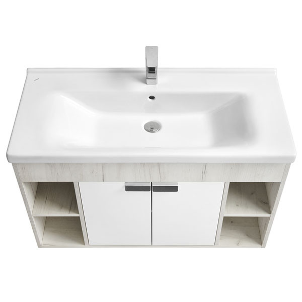1A2375K0FAX10 Набор: 1A237501FAX10 Тумба-умывальник Флай 100 Бел Дуб КРАФТ/ 1WH302249 Раковина Миранда 100