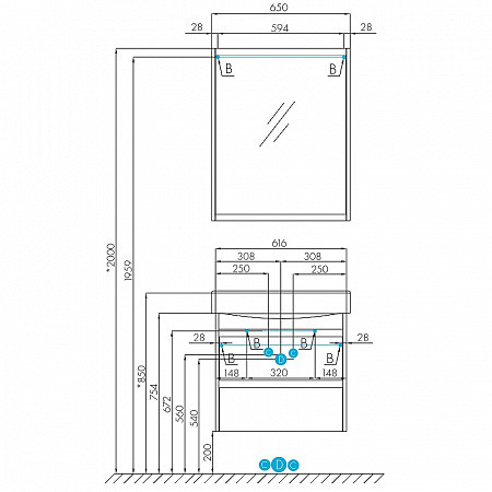 1A2488K0NT010 Набор: 1A248801NT010 Тумба-умывальник Нортон 65/ 1WH302501 раковина Беверли 65