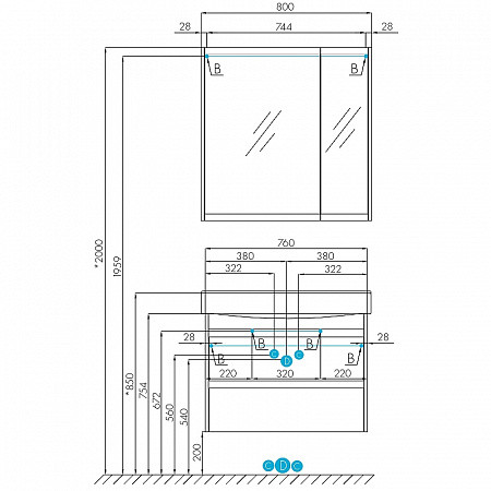 1A2489K0NT010 Набор: 1A248901NT010 Тумба-умывальник Нортон 80/ 1WH302422 раковина Беверли 80