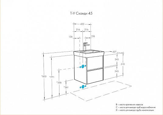 1A2516K0SDB20 Набор: 1A251601SDB20 Тумба-умывальник Сканди 45 Бел/Дуб Верона/ 1WH501630 Раковина Адриана 45