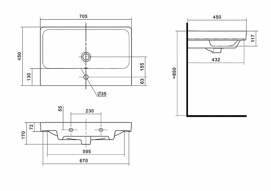 1A2518K0SDZ90 Набор: 1A251801SDZ90 Тумба-умывальник Сканди 70 Бел/Дуб Рустикальный/ 1WH501628 Раковина Адриана 70