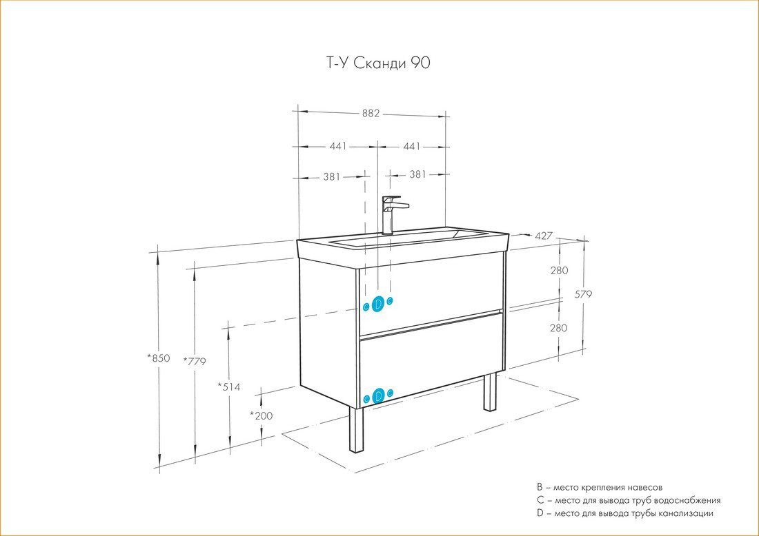 1A2519K0SDZ90 Набор: 1A251901SDZ90 Тумба-умывальник Сканди 90 Бел/Дуб Рустикальный/ 1WH501629 Раковина Адриана 90