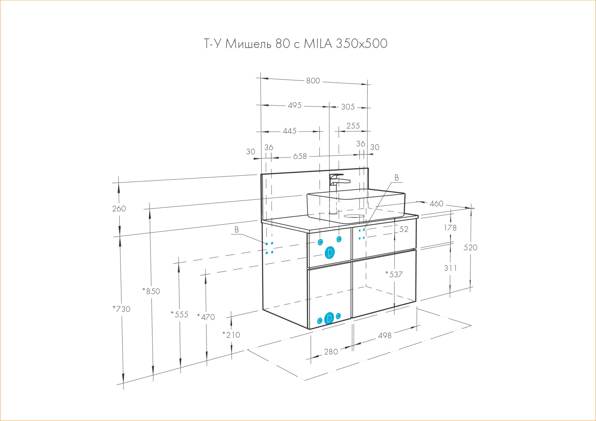 1A2568K1MIX30 Набор: 1A256801MIX30 Тумба-умывальник Мишель 80 Дуб Рустикальный/ 732700B000 Раковина Мила/ 1A253203MIX40 Керамогранит