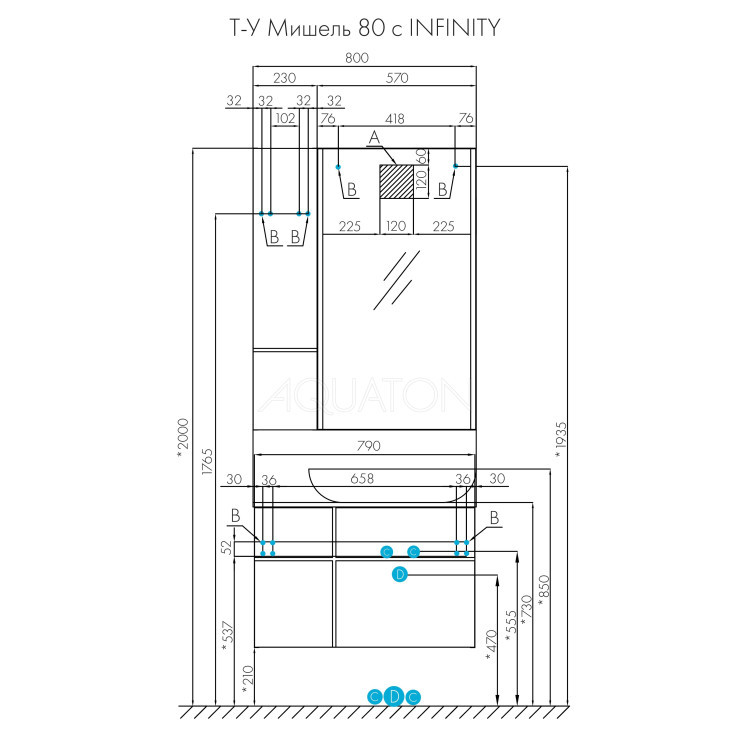 1A2568K2MIX30 Набор: 1A256801MIX30 Тумба-умывальник Мишель 80 Дуб Рустикальный/ 1AX169WBXX000 Раковина Инфинити/ 1A256603MIDR0 ЛВДСП