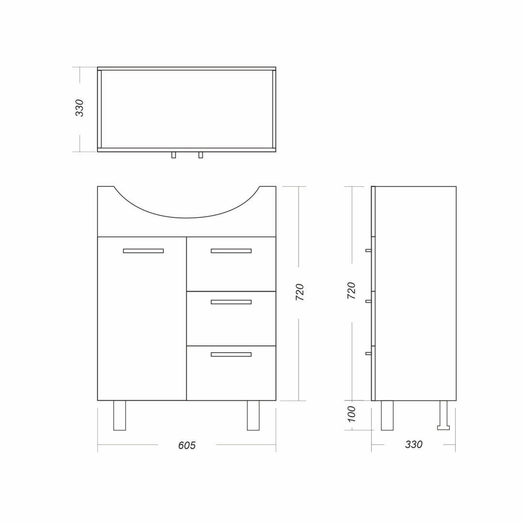 ЛАГУНА/3 Тумба напольная 605х720х320 бел. (подходит умывальник мебельный Лагуна 65)
