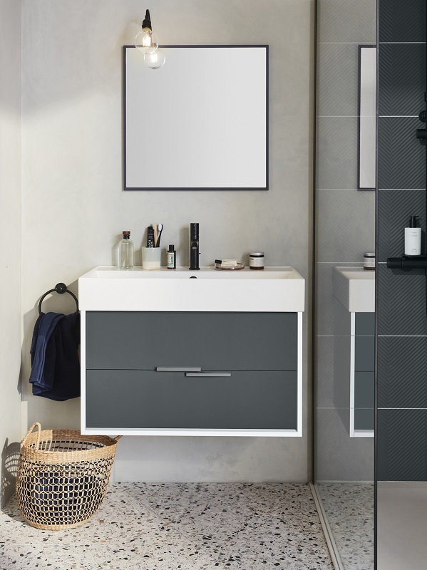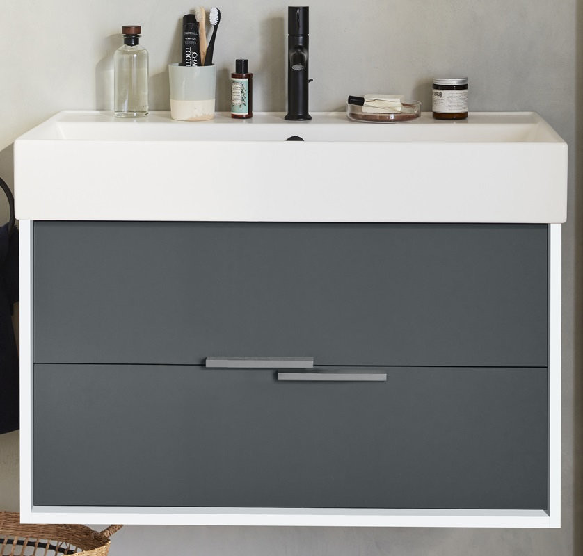 EB1668-J5-J54 VIVIENNE Тумба для раковины 100 см, к. белый блестящий, ф. серый матовый