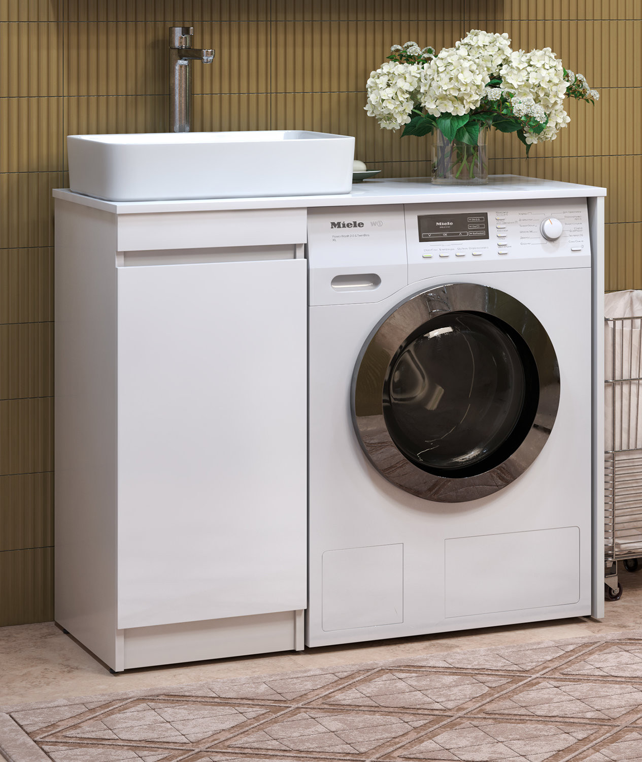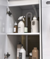 Специальный сифон Vigo в комплекте. Материал корпуса: влагостойкая ЛДСП Материал фасада: ЛМДФ Покрытие фасада: пленка ПВХ Отсутствие лицевой фурнитуры – интегрированная ручка.