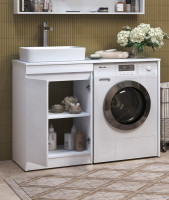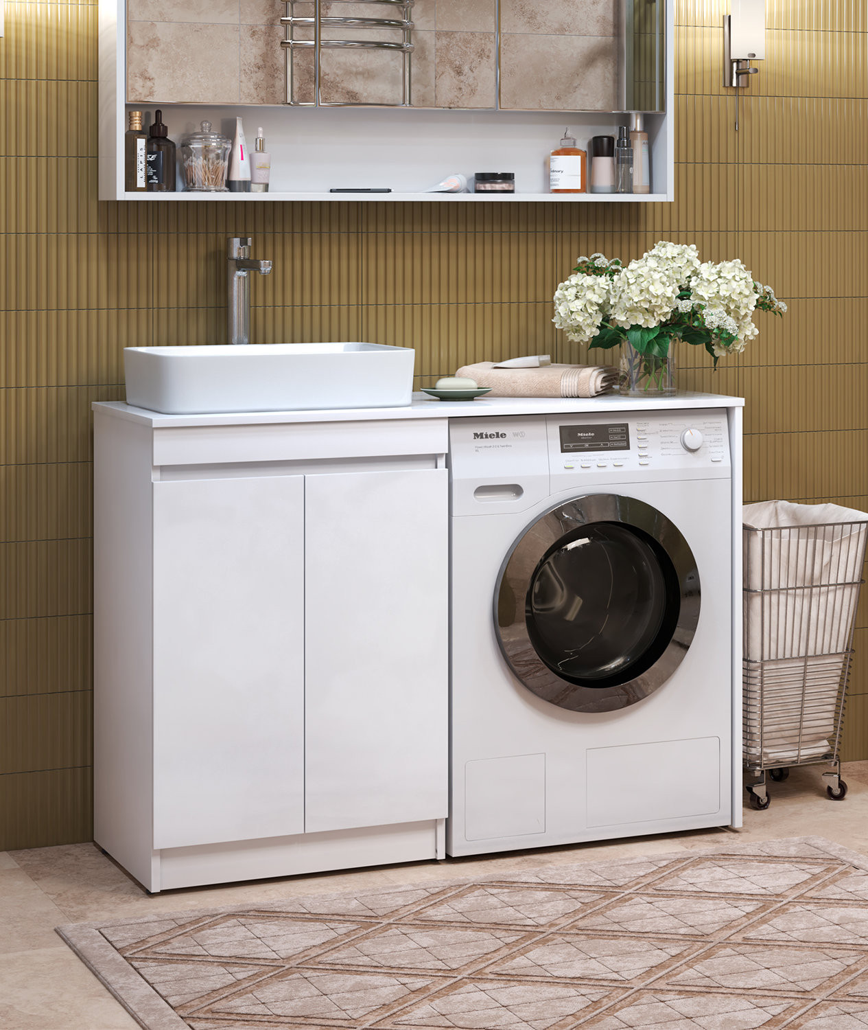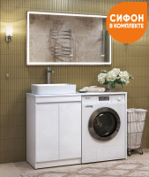 Специальный сифон Vigo в комплекте. Материал корпуса: влагостойкая ЛДСП Материал фасада: ЛМДФ Покрытие фасада: пленка ПВХ Отсутствие лицевой фурнитуры – интегрированная ручка.