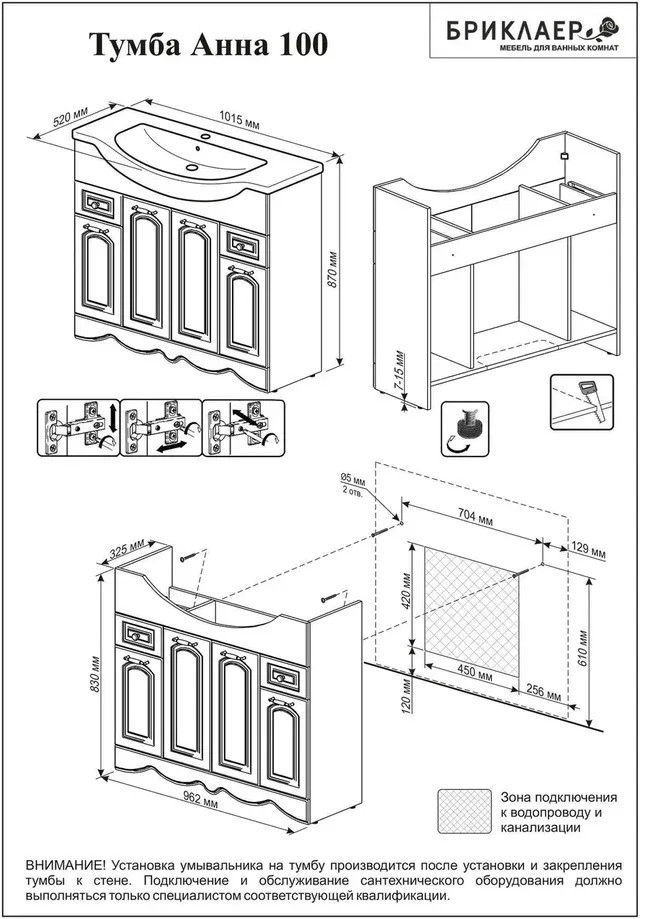 Тумба под раковину напольная Бриклаер АННА белый , 100 см