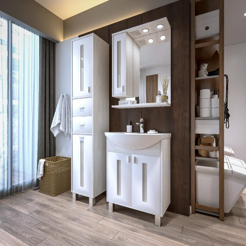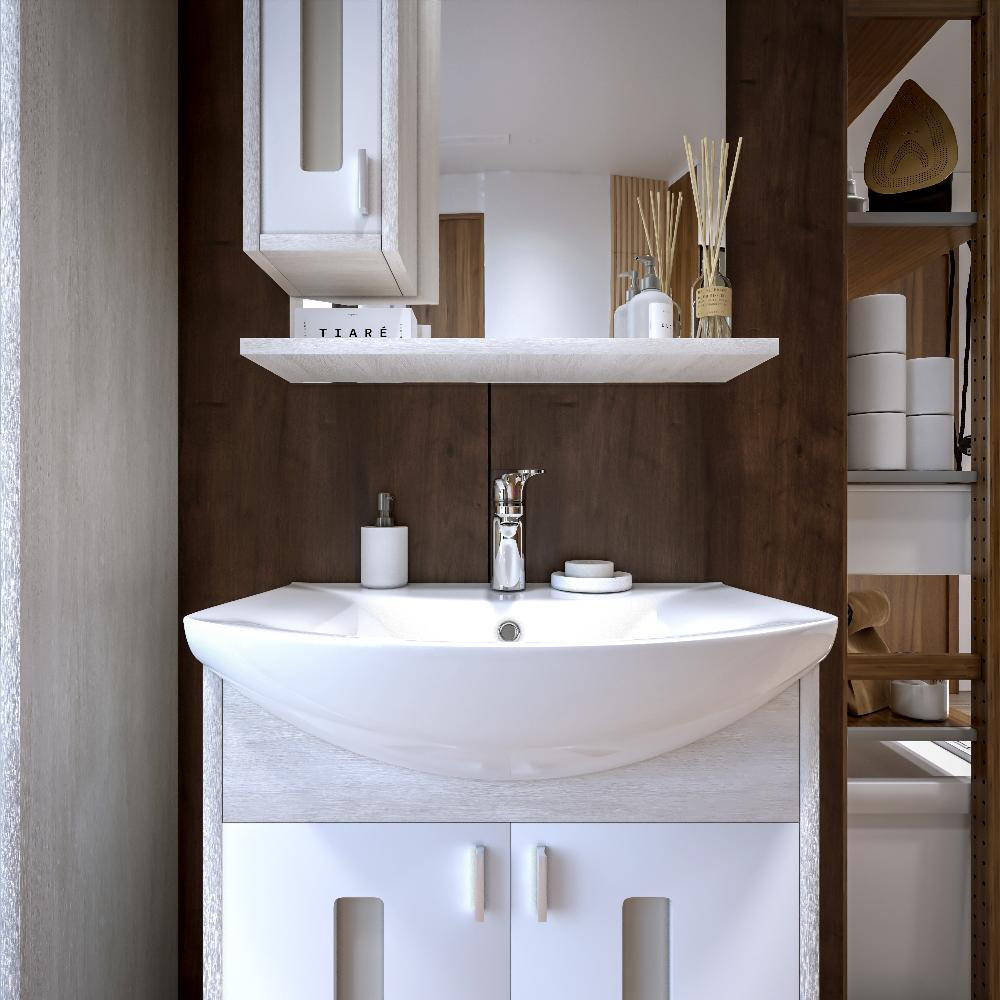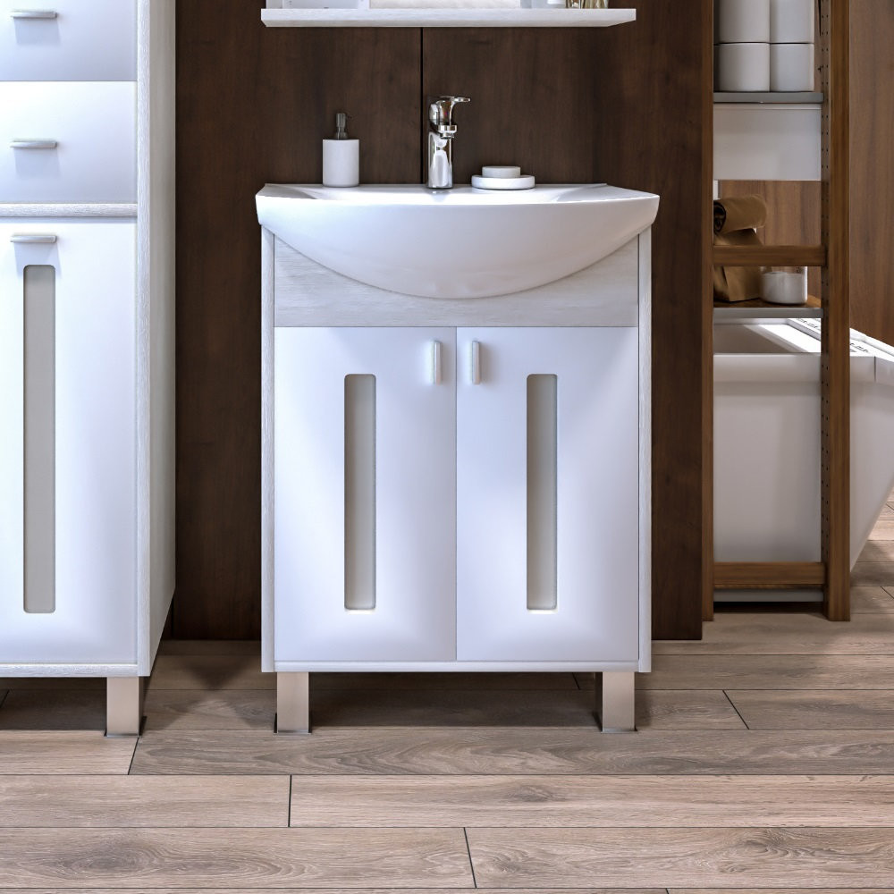 Тумба под раковину напольная Бриклаер БАЛИ светлая лиственница/белый, 60 см