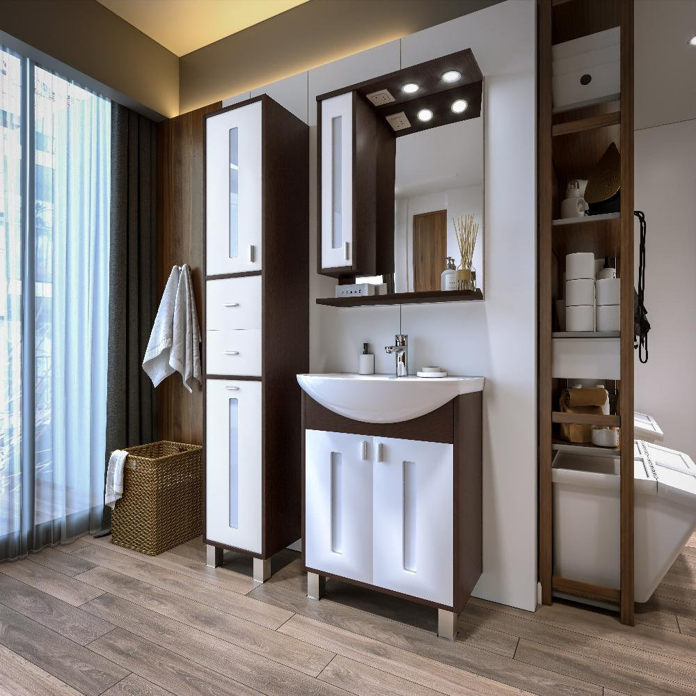 Тумба под раковину напольная Бриклаер БАЛИ венге/белый , 60 см