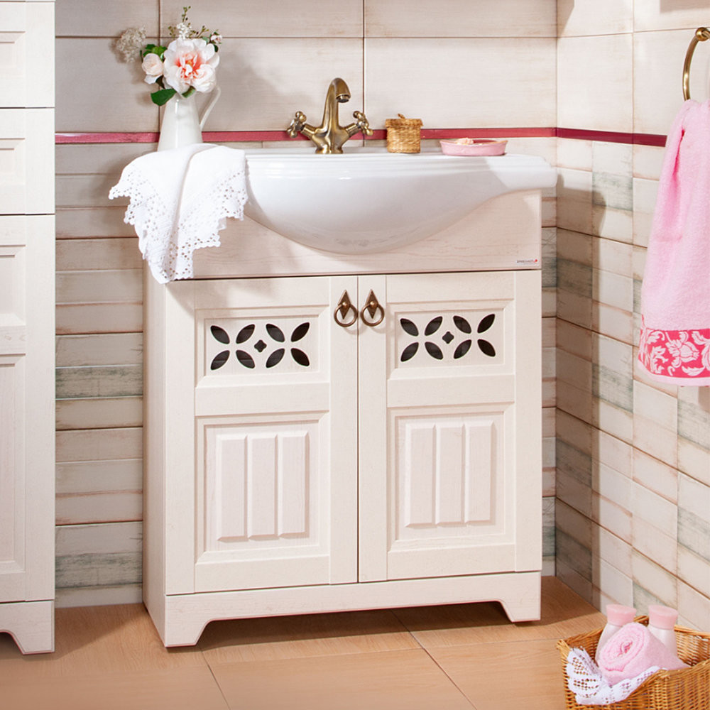Тумба под раковину напольная Бриклаер КАНТРИ бежевый дуб прованс, 80 см