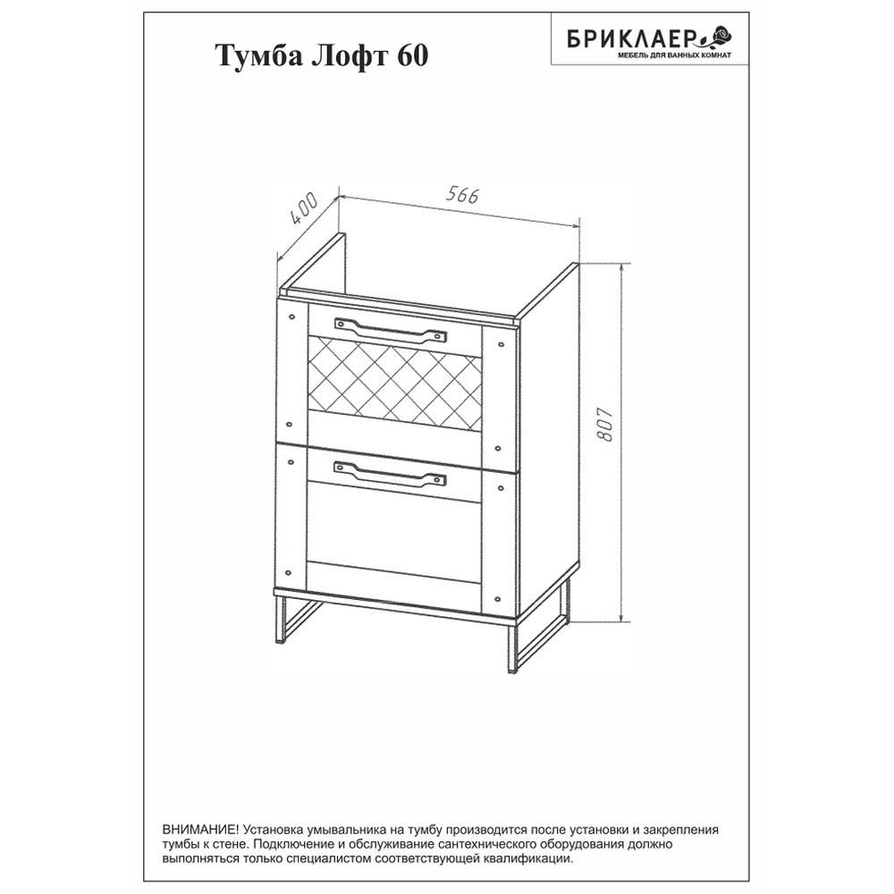 Тумба под раковину напольная Бриклаер ЛОФТ метрополитен грей, 60 см