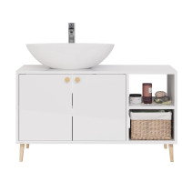 Тумба под раковину напольная Dreja Luno 100 см, белый. Фурнитура: Boyard. Компоновка: 2 дверцы, 2 открытые полки. Монтаж: напольный.
