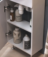 1 дверца; 1 полка ЛДСП; ручка металлическая хромированная; опоры конус регулируемые. Материал корпуса: влагостойкая ЛДСП Материал фасадов: ЛМДФ Покрытие: пленка ПВХ Дверцы: петли с механизмом плавного закрывания.