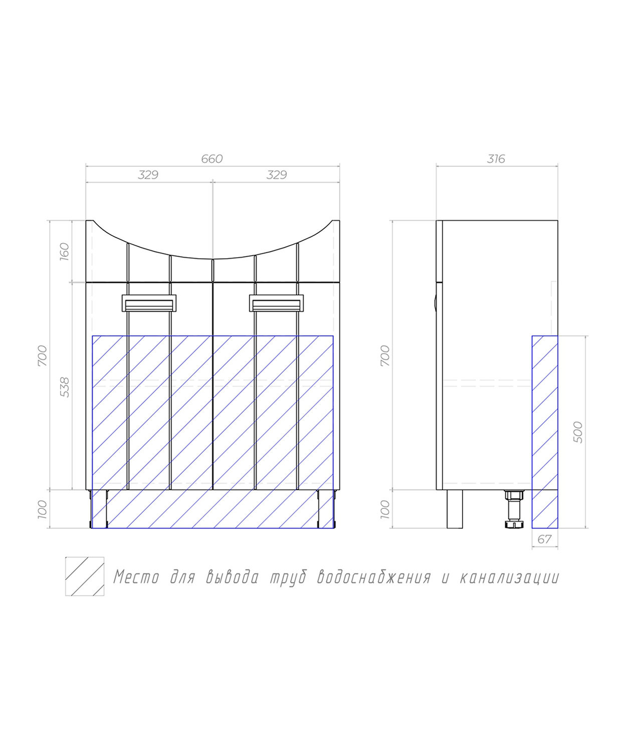 Тумба под раковину напольная VIGO Diana tn.DIA.PAL.70.2D, 70 см
