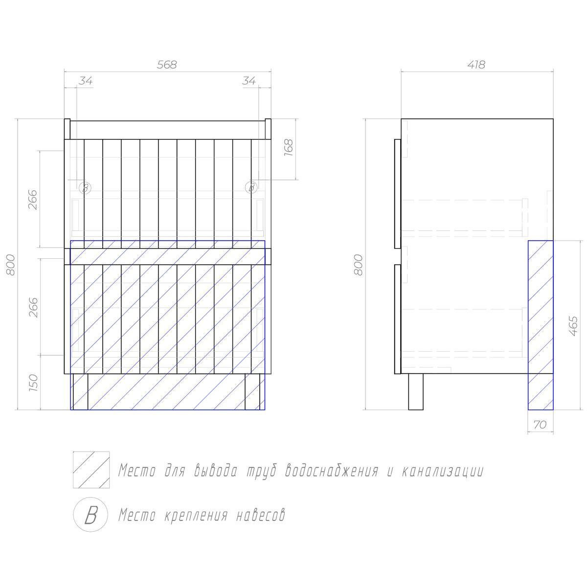 Тумба под раковину напольная VIGO Finlay tn.FIN.COM.60.2Y, 60 см