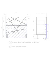Напольная тумба. 2 ящика; опоры квадратные регулируемые. Специальный сифон Vigo в комплекте. Материл корпуса тумбы: влагостойкая ЛДСП Материал фасадов: МДФ Покрытие: пленка ПВХ Ящики: направляющие полного выдвижения, механизм push-to-open