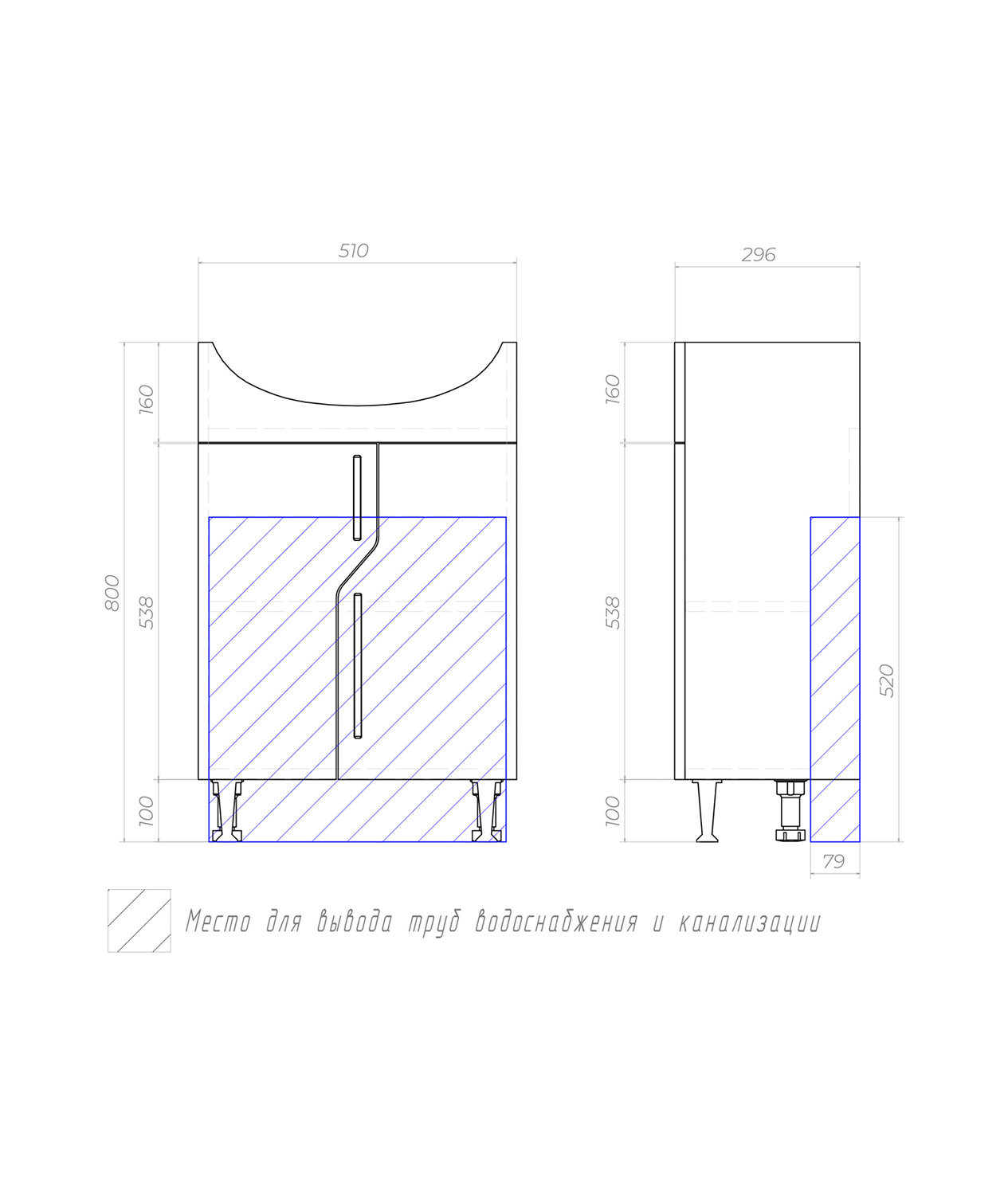 Тумба под раковину напольная VIGO Grand tn.GRA.UYU.55.2D, 55 см