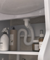 2 дверцы; 1 полка ЛДСП; опоры конус регулируемые. Специальный сифон Vigo в комплекте. Материал корпуса: влагостойкая ЛДСП Материал фасадов: ЛМДФ Покрытие: пленка ПВХ.