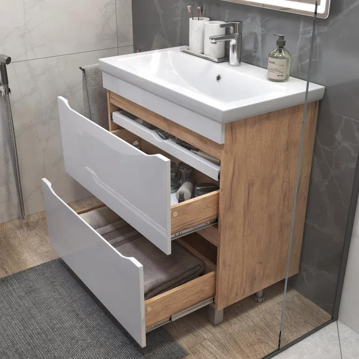 Тумба под раковину напольная VIGO Grani 203 дуб золотой, 80 см. Гарантийный срок 2 года. Монтаж: напольный. Доводчик: нет. Нажимной механизм: нет.
