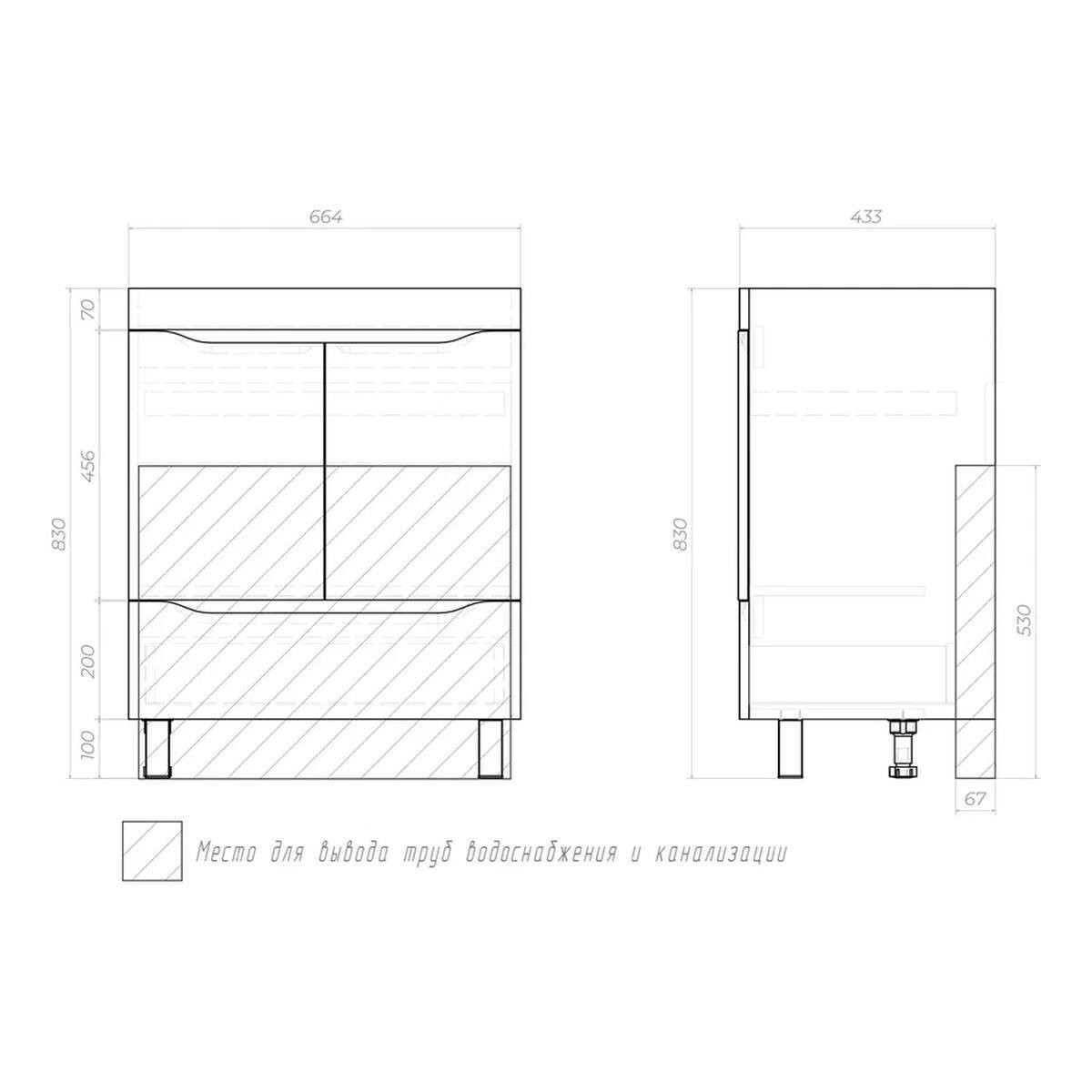 Тумба под раковину напольная VIGO Grani 285 дуб золотой, 70 см. Гарантийный срок 2 года. Монтаж: напольный. Доводчик: да. Нажимной механизм: нет.