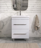 Тумба под раковину напольная VIGO Land tn.LAN.COM.60.2Y, 60 см: 2 выдвижных ящика, скрытые направляющие Hafele, 2 навеса, 2 опоры квадратные регулируемые, 1 сифон.