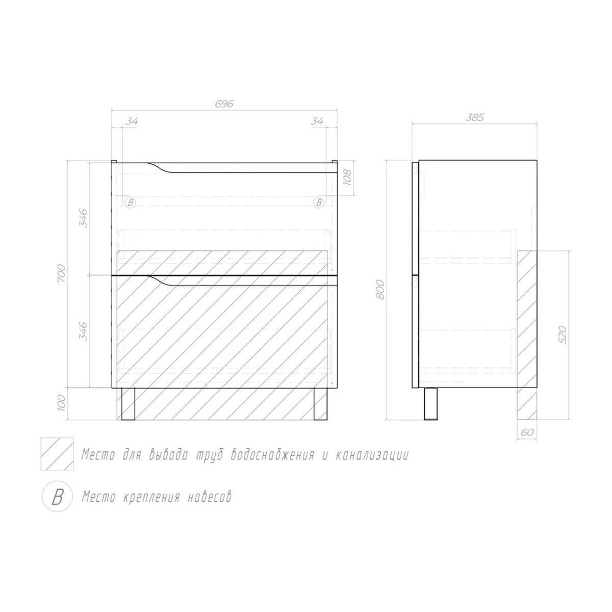 Тумба под раковину напольная VIGO Neo 017, 70 см. Гарантийный срок 2 года. Монтаж: напольный. Доводчик: да. Нажимной механизм: нет.