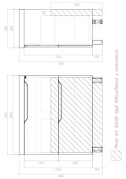 Материал корпуса: влагостойкая ЛДСП Материал фасада: ЛМДФ Покрытие фасада: пленка ПВХ Ящики: направляющие полного выдвижения Отсутствие лицевой фурнитуры – интегрированная в фасад ручка