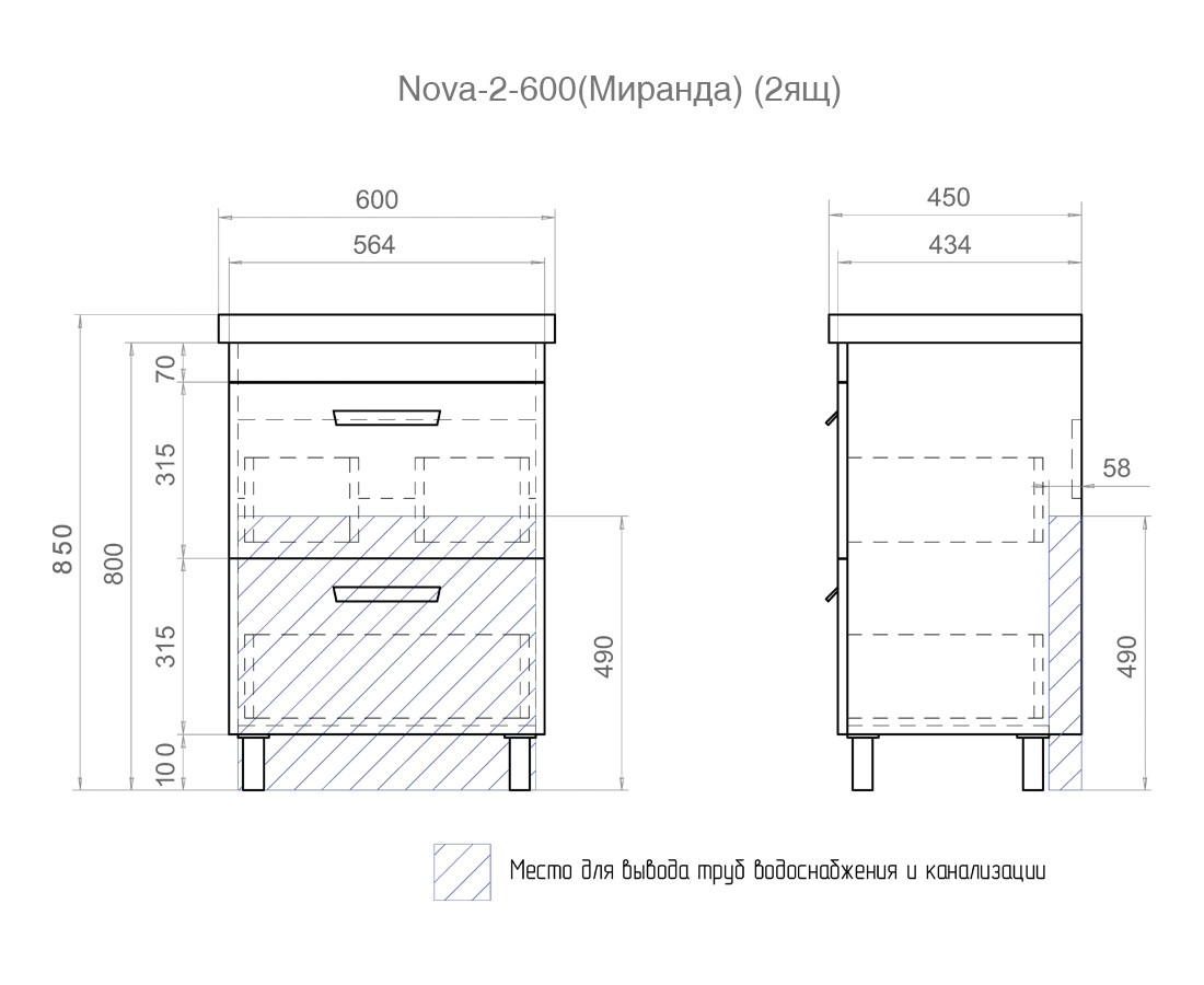 Тумба под раковину напольная VIGO Nova tn.NOV.MIR.60.2Y, 60 см