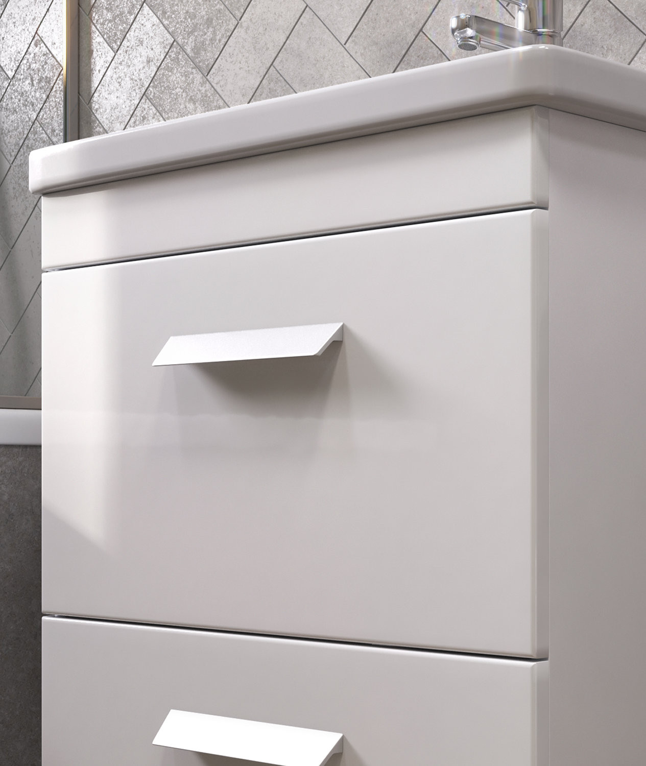 2 выдвижных ящика; ручка пластиковая матовый хром; опоры квадратные регулируемые. Материал корпуса: влагостойкая ЛДСП. Материал фасадов: ЛМДФ Покрытие: пленка ПВХ Ящики: направляющие полного выдвижения