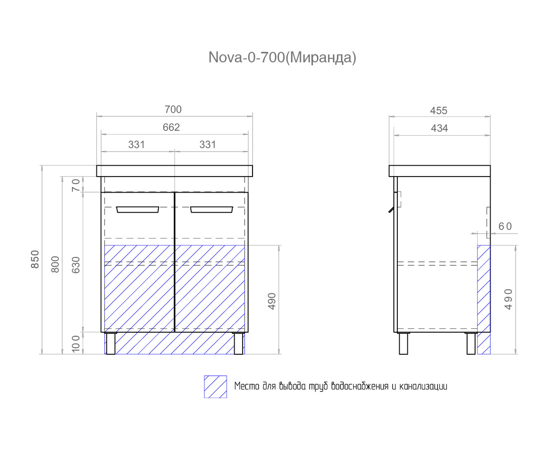 Тумба под раковину напольная VIGO Nova tn.NOV.MIR.70.2D, 70 см