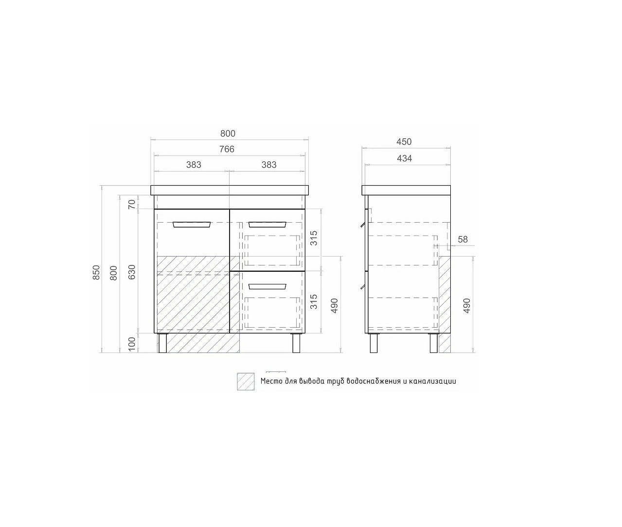 Тумба под раковину напольная VIGO Nova tn.NOV.MIR.80.1D.2Y, 80 см