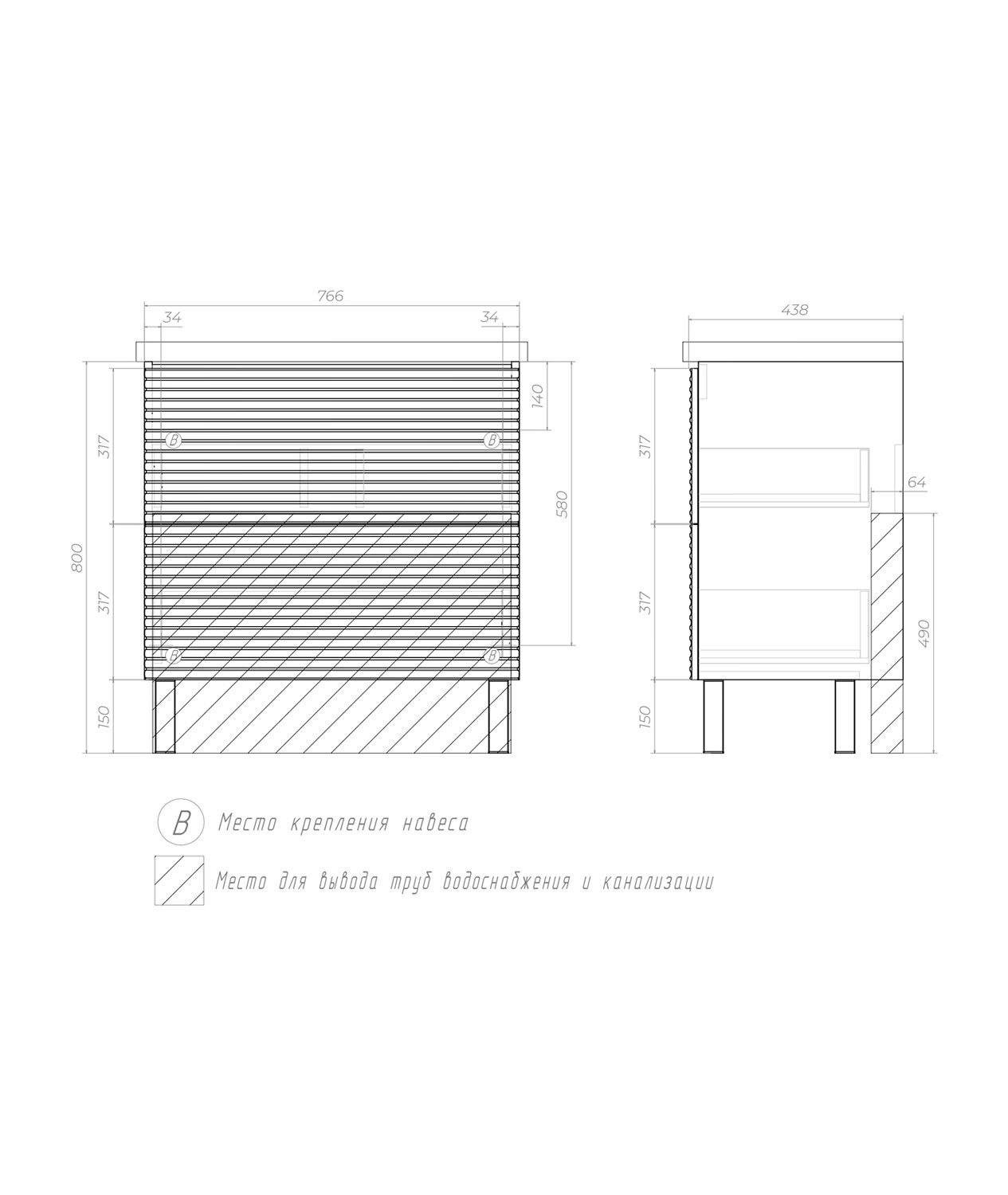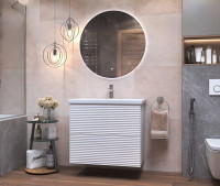 Тумбы Otti выделяются оригинальным исполнением фасадов, благодаря горизонтальной фрезеровке. Встроенный механизм push-to-open Hafele (Германия).Удобное открывание легким нажатием на фасад Два варианта размещения: напольное/подвесное