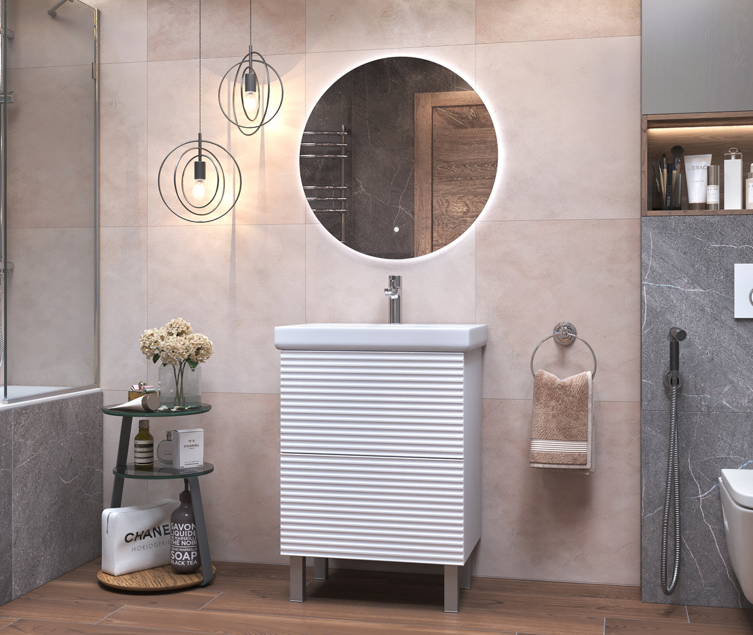 Тумбы Otti выделяются оригинальным исполнением фасадов, благодаря горизонтальной фрезеровке. Встроенный механизм push-to-open Hafele (Германия).Удобное открывание легким нажатием на фасад Два варианта размещения: напольное/подвесное