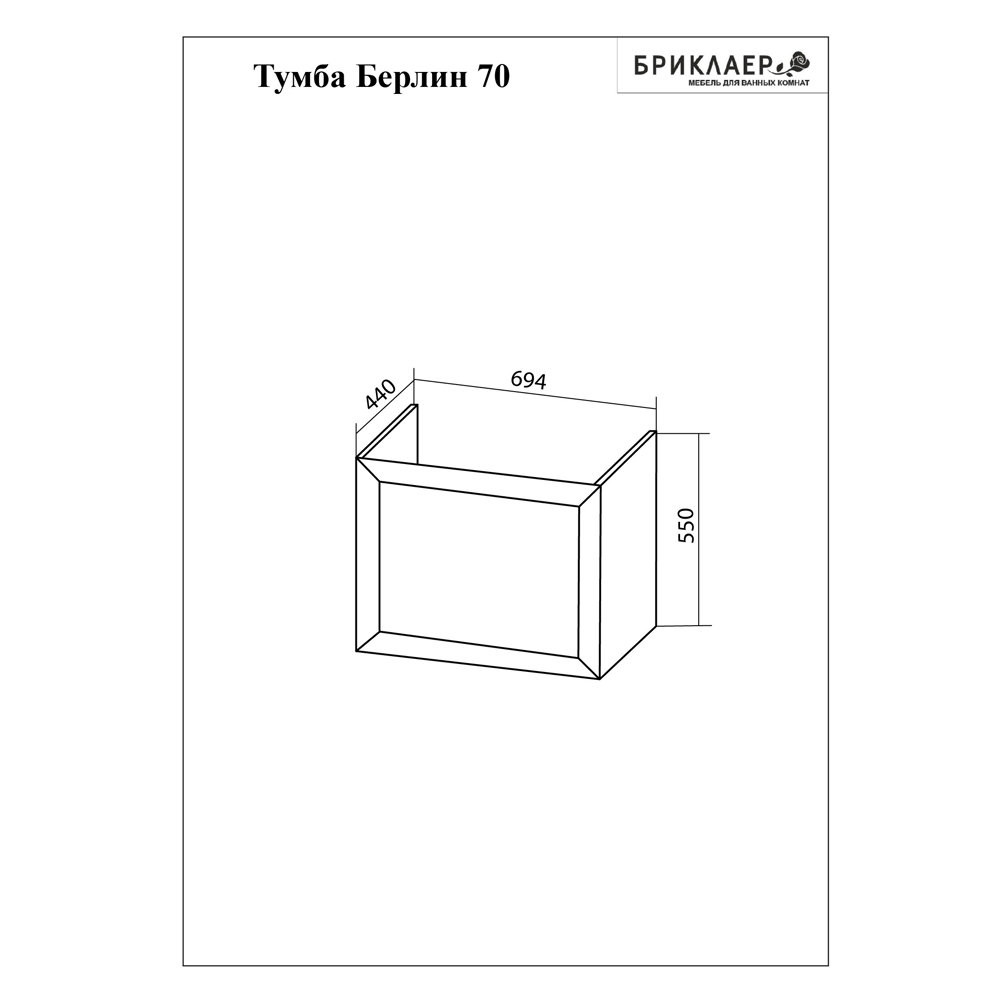 Тумба под раковину подвесная Бриклаер БЕРЛИН белый , 70 см