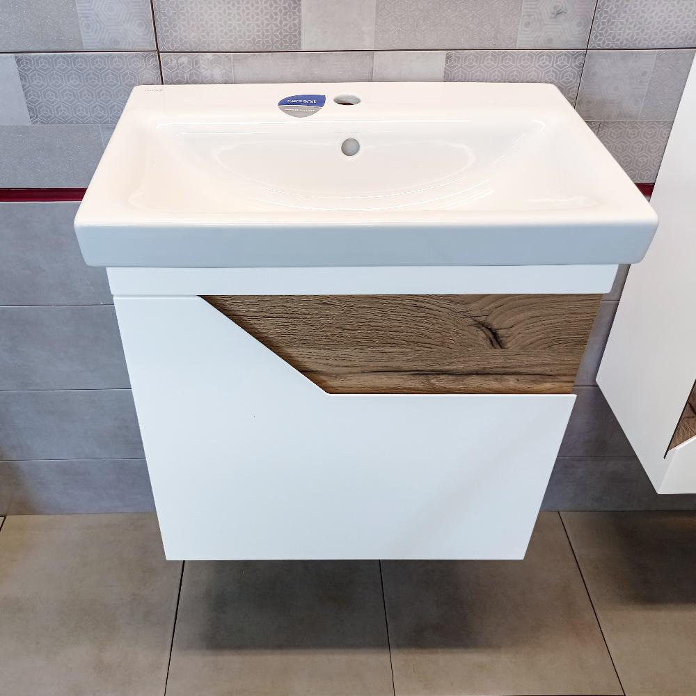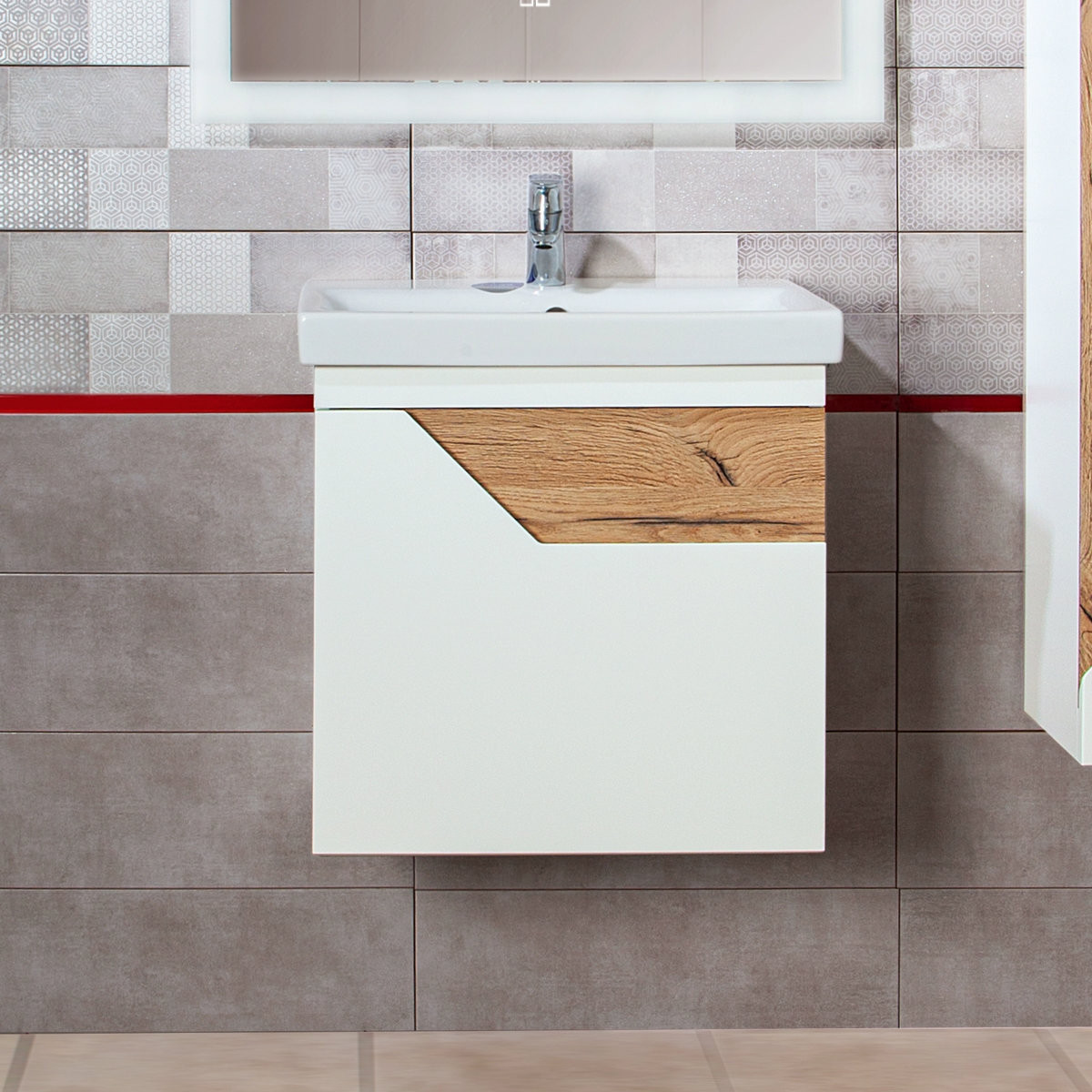 Тумба под раковину подвесная Бриклаер Брайтон белый/дуб, 60 см