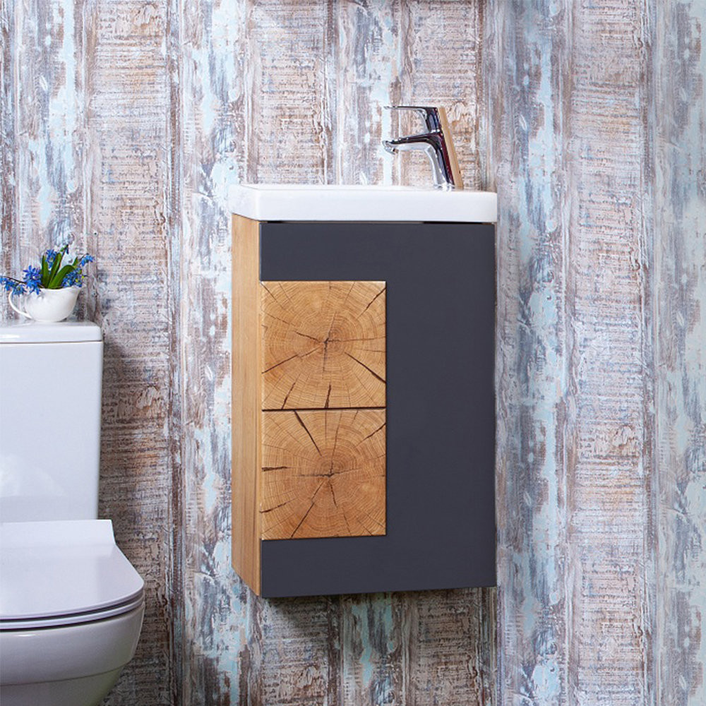Тумба под раковину подвесная Бриклаер Форест дуб золотой/антрацит, 40 см