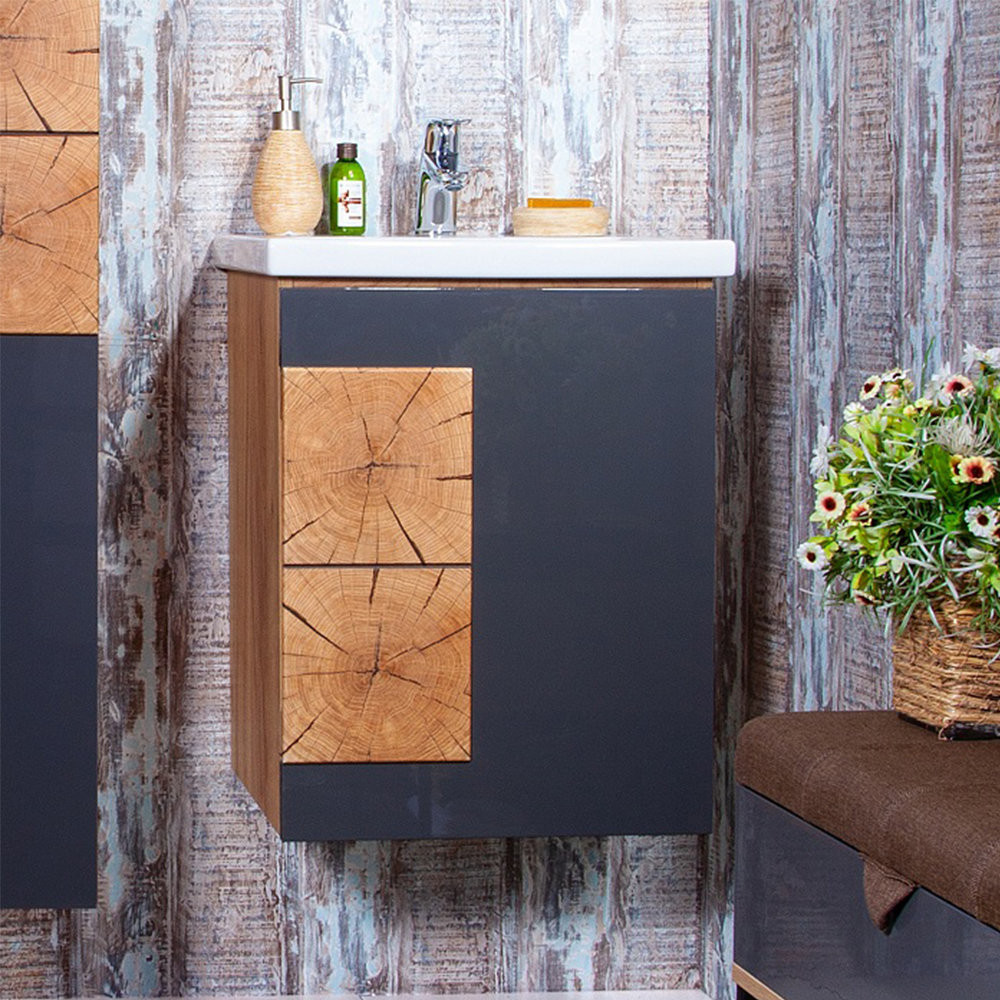 Тумба под раковину подвесная Бриклаер Форест дуб золотой/антрацит, 50 см