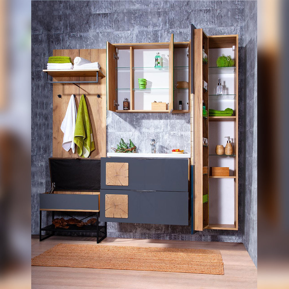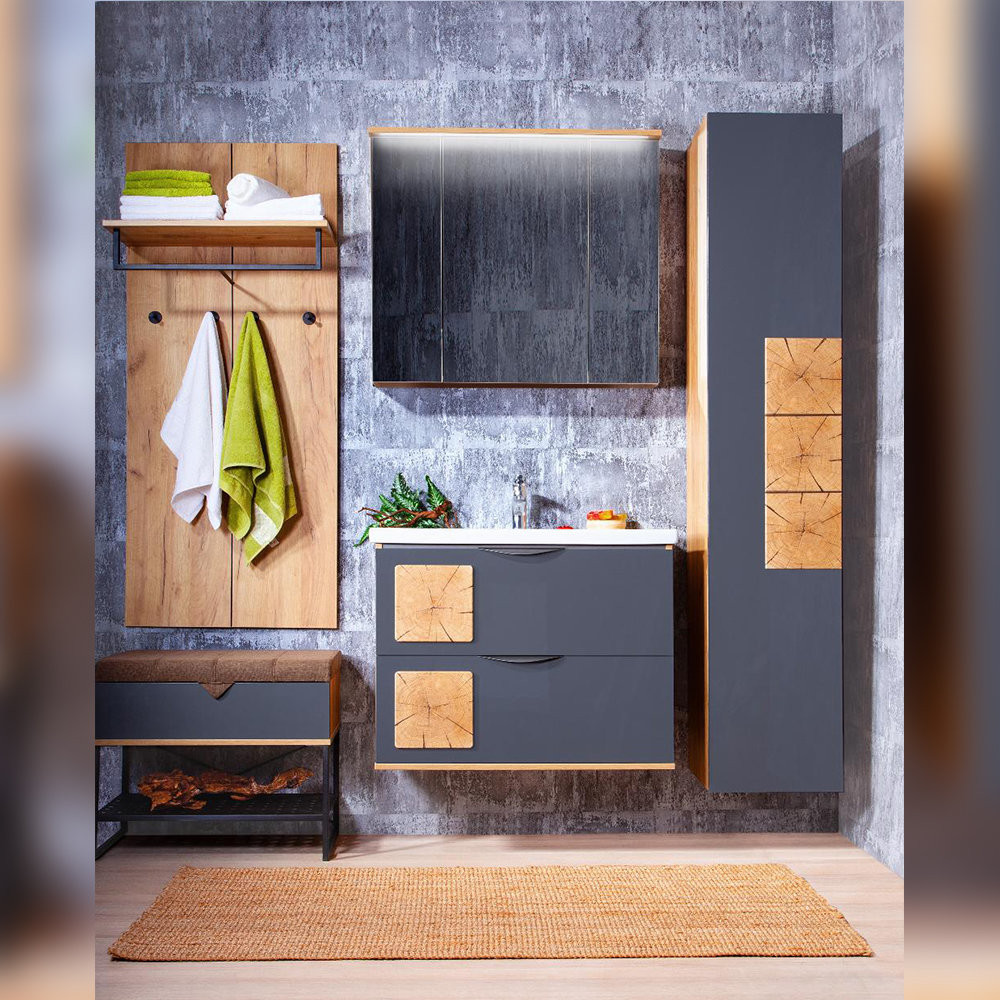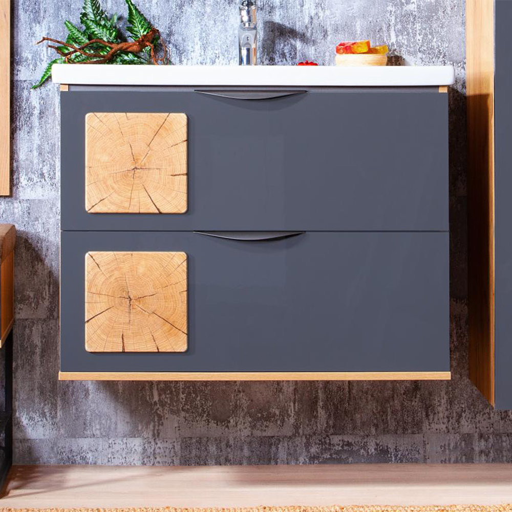 Тумба под раковину подвесная Бриклаер Форест дуб золотой/антрацит, 80 см