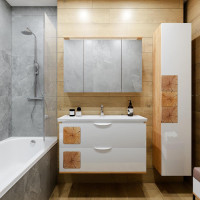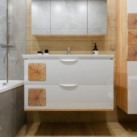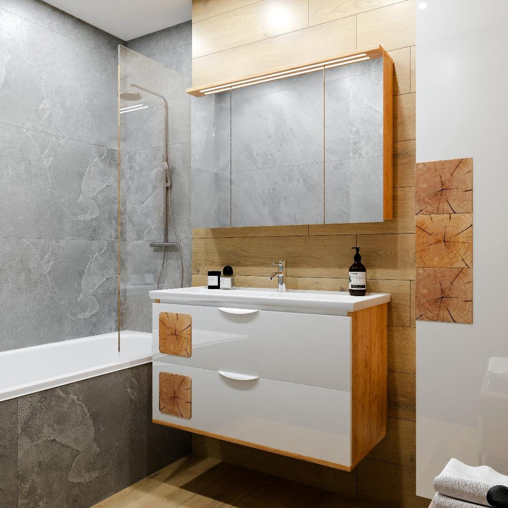 Тумба под раковину подвесная Бриклаер Форест дуб золотой/белый, 100 см