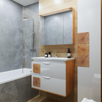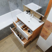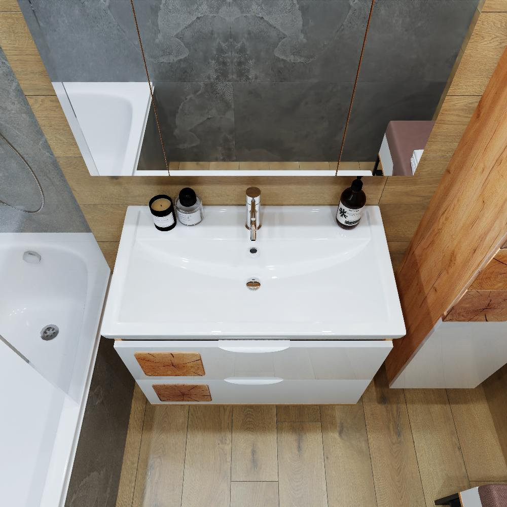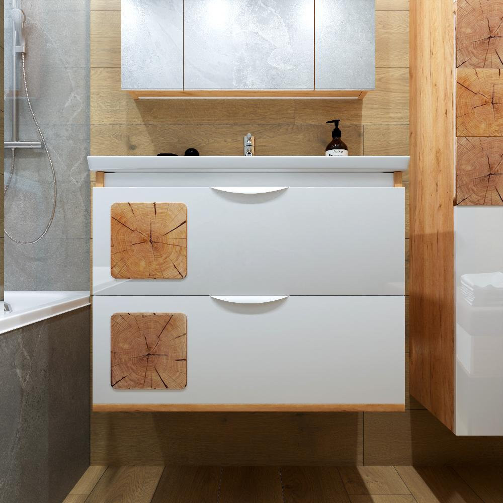 Тумба под раковину подвесная Бриклаер Форест дуб золотой/белый, 80 см