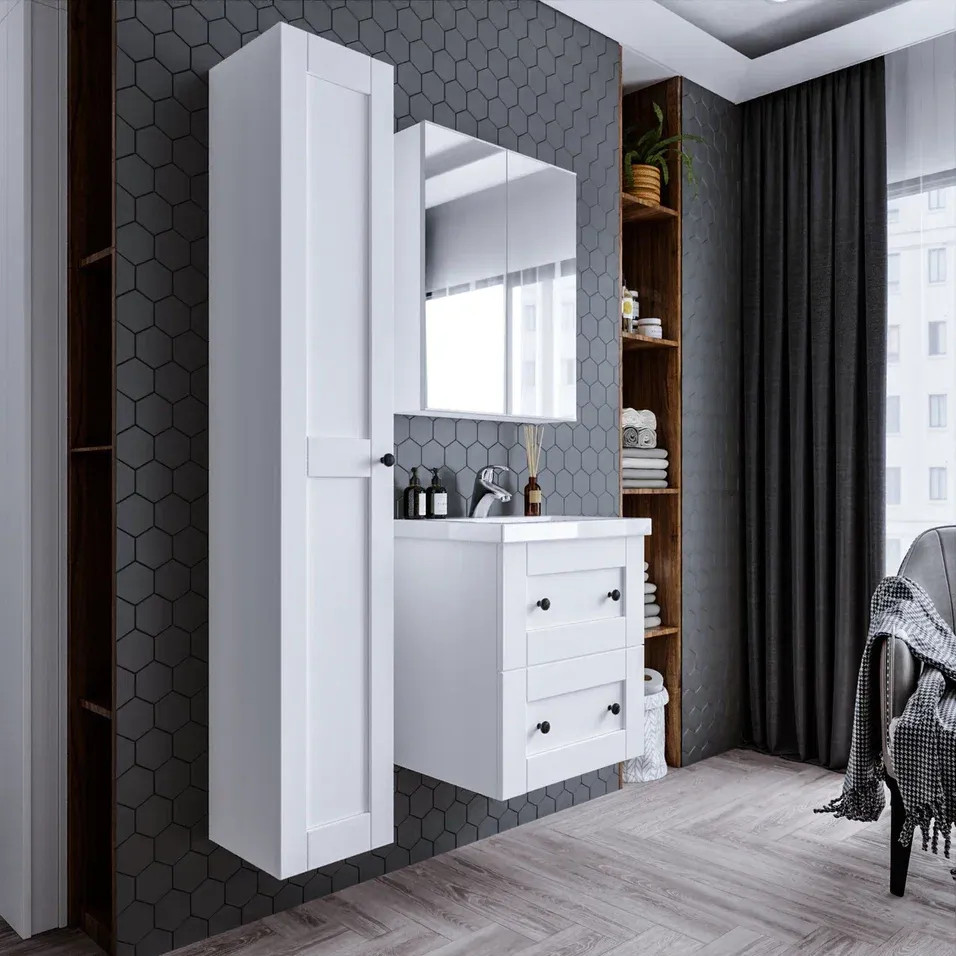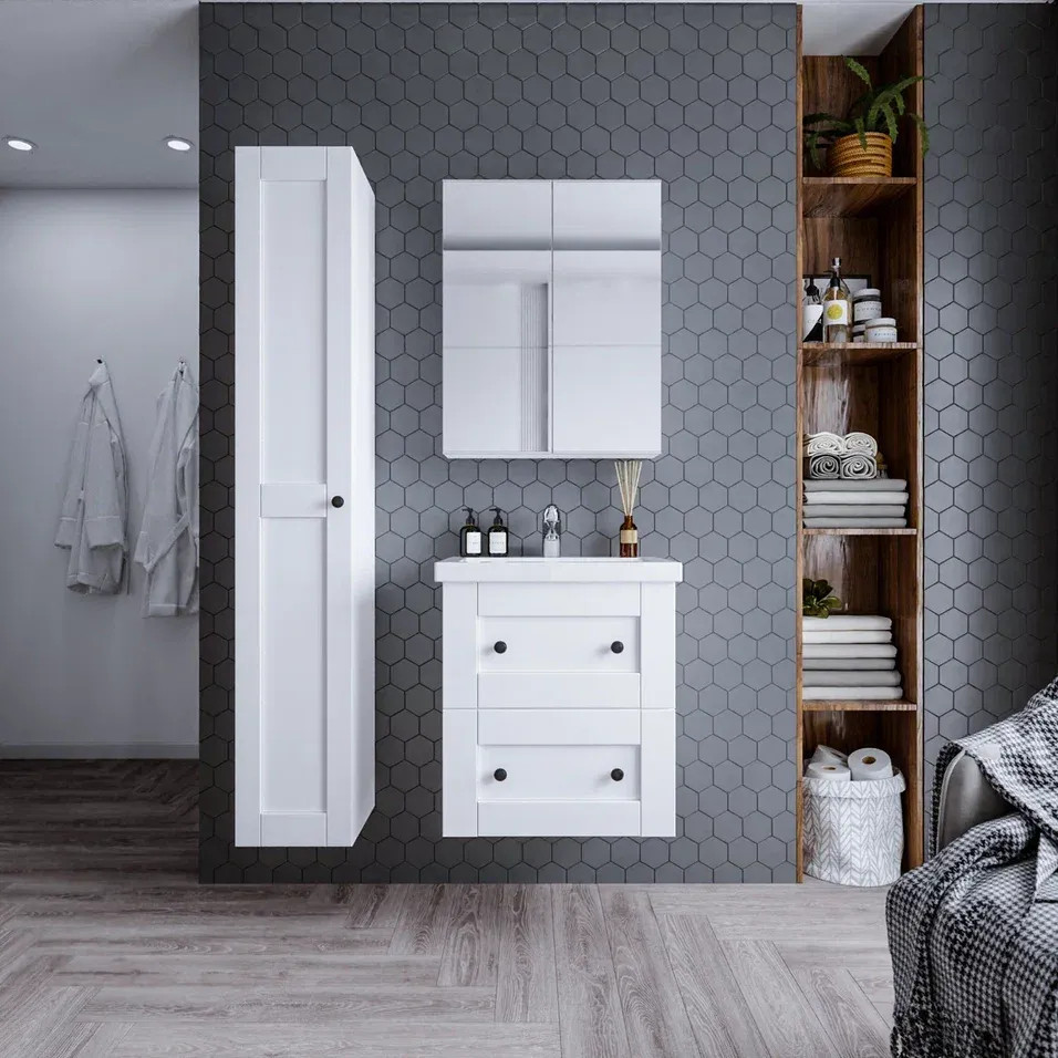 Тумба под раковину подвесная Бриклаер Хелена (рамочная) белый, 60 см