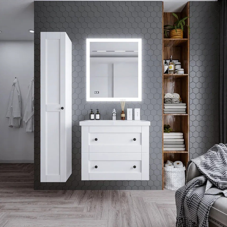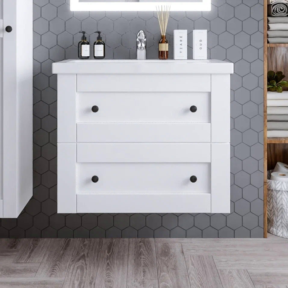 Тумба под раковину подвесная Бриклаер Хелена (рамочная) белый, 80 см