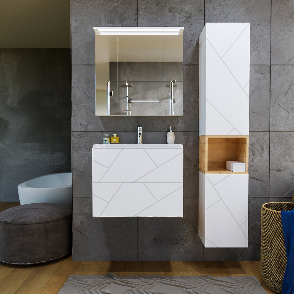 Тумба под раковину подвесная Бриклаер КРИСТАЛЛ белый, 70 см