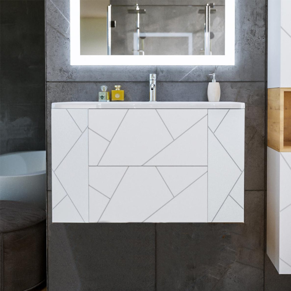 Тумба под раковину подвесная Бриклаер КРИСТАЛЛ белый, 90 см