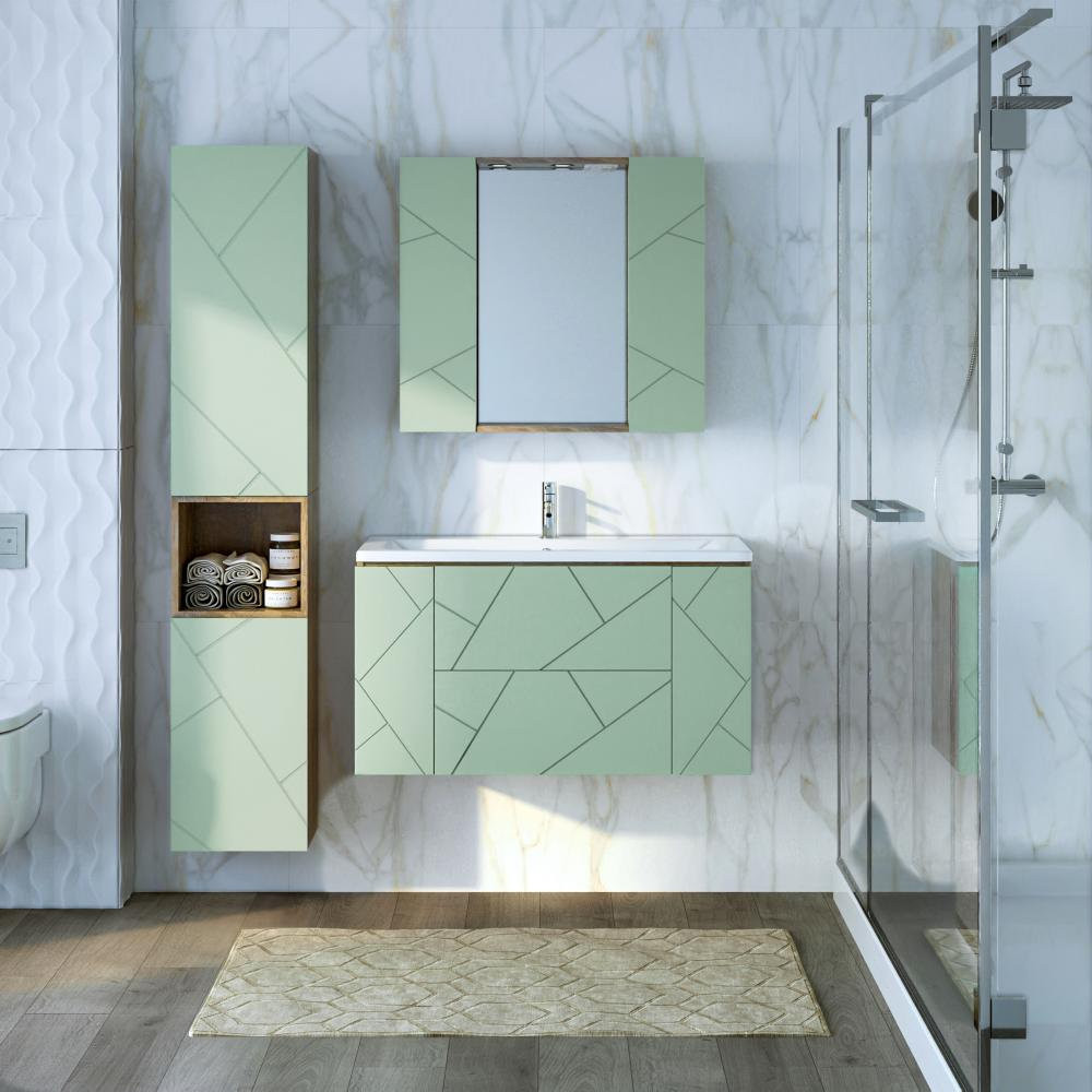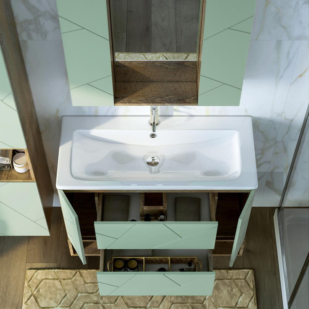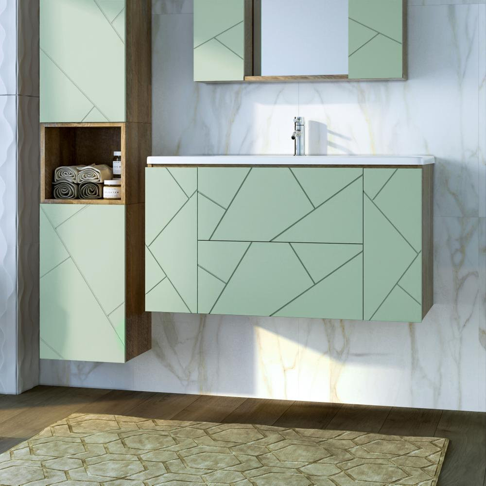 Тумба под раковину подвесная Бриклаер КРИСТАЛЛ фисташковый, 100 см